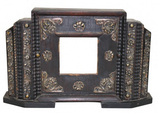 • DIVERSOS-  Antiga caixa para relógio em jacarandá da Bahia entalhado e apliques em prata. Medidas 20A x 30C x 8P. Faltando a máquina e fundo.