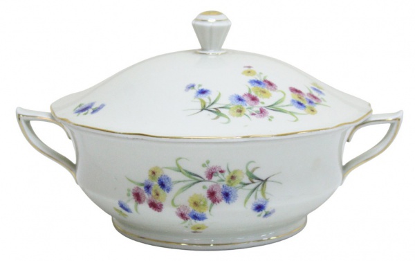 • PORCELANA - delicada LEGUMEIRA BOHEMIA / ROYAL IVORY made in CZEKOSLOWAKIA. Decoração floral em policromia com filetes dourados. Mede: 15,5A x 26,5 cm de cabo a cabo.